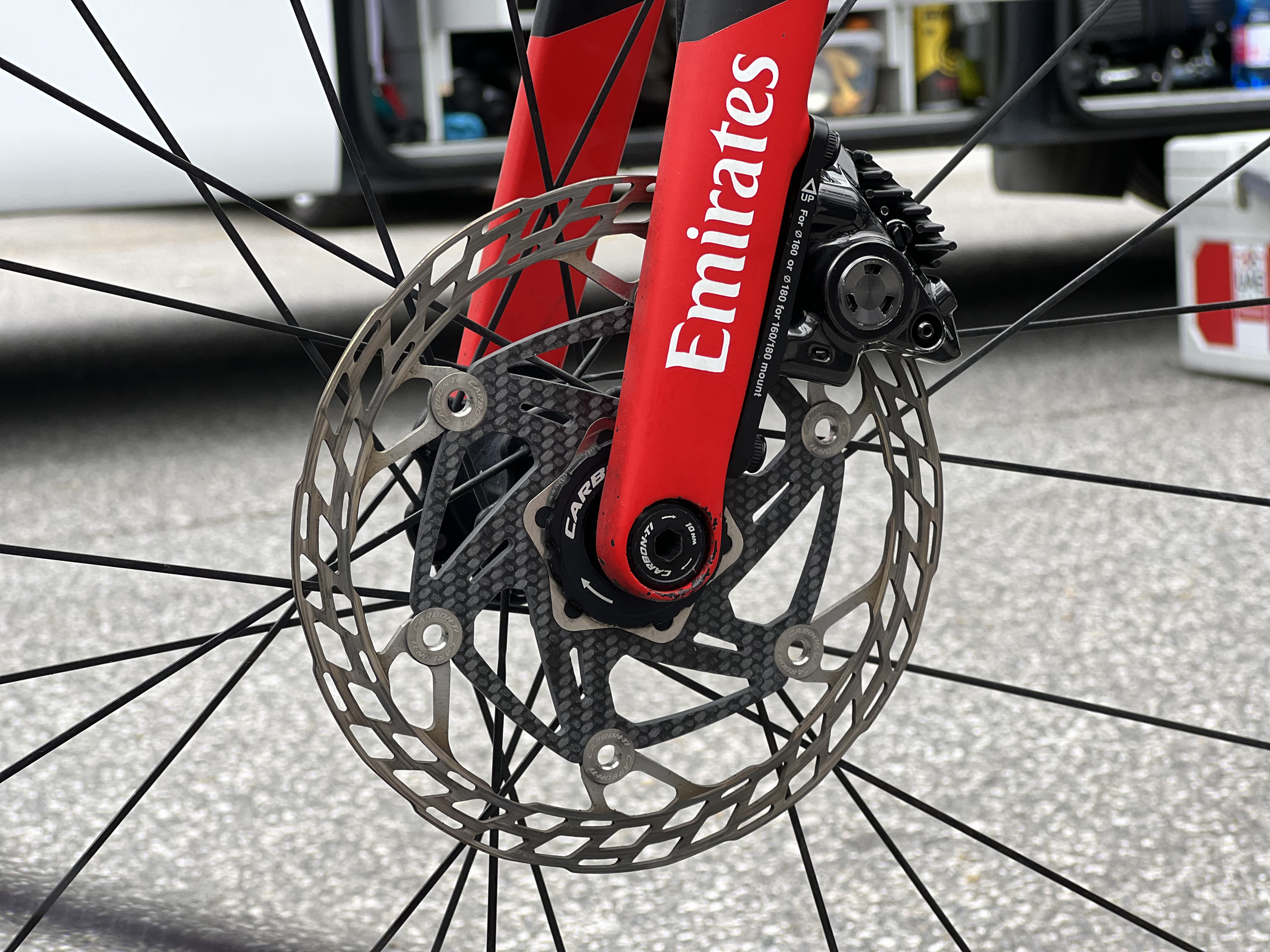 เมื่อ Carbon-Ti แบรนด์ที่มีชื่อเสียงในการผลิตอุปกรณ์จักรยานที่ทำจากคาร์บอนเกรดสูงสำหรับใช้ในการแข่งขัน ทั้งรถจักรยานถนน และ เสือภูเขา UAE Team Emirates. ในปี 2023 นี้ คาร์บอน ไทด์ได้เปิดตัวสินค้าใหม่ที่ใช้กับ ทีมระดับ โปรทัวร์ โดยเป็นสินค้า ใบจานคาร์บอน รุ่น X-Carboring EVO carbon และ แกนล้อดิสต์ทรูเอ็กเซลส์ แบบเบา และสติฟ X-Lock EVO thru-axles และ ใบดิสต์เบรค รุ่น X-Rotor SteelCarbon โดยเฉพาะ โดยอุปกรณ์ชุดนี้ จะถูกใช้โดย โปรนักปั่น อย่าง Tadej Pogačar ในการพิชิตการแข่งขัน One day race ที่มีชื่อเสียงอย่าง Amstel Gold Race และ Tour of Flanders และ ทีมนักกีฬาอย่าง UAE Team Emirates. ในการแข่งทัวร์ระดับโลก อย่าง Giro d'Italia และ the Tour de France รวมถึงทัวร์ the Vuelta a España ด้วย